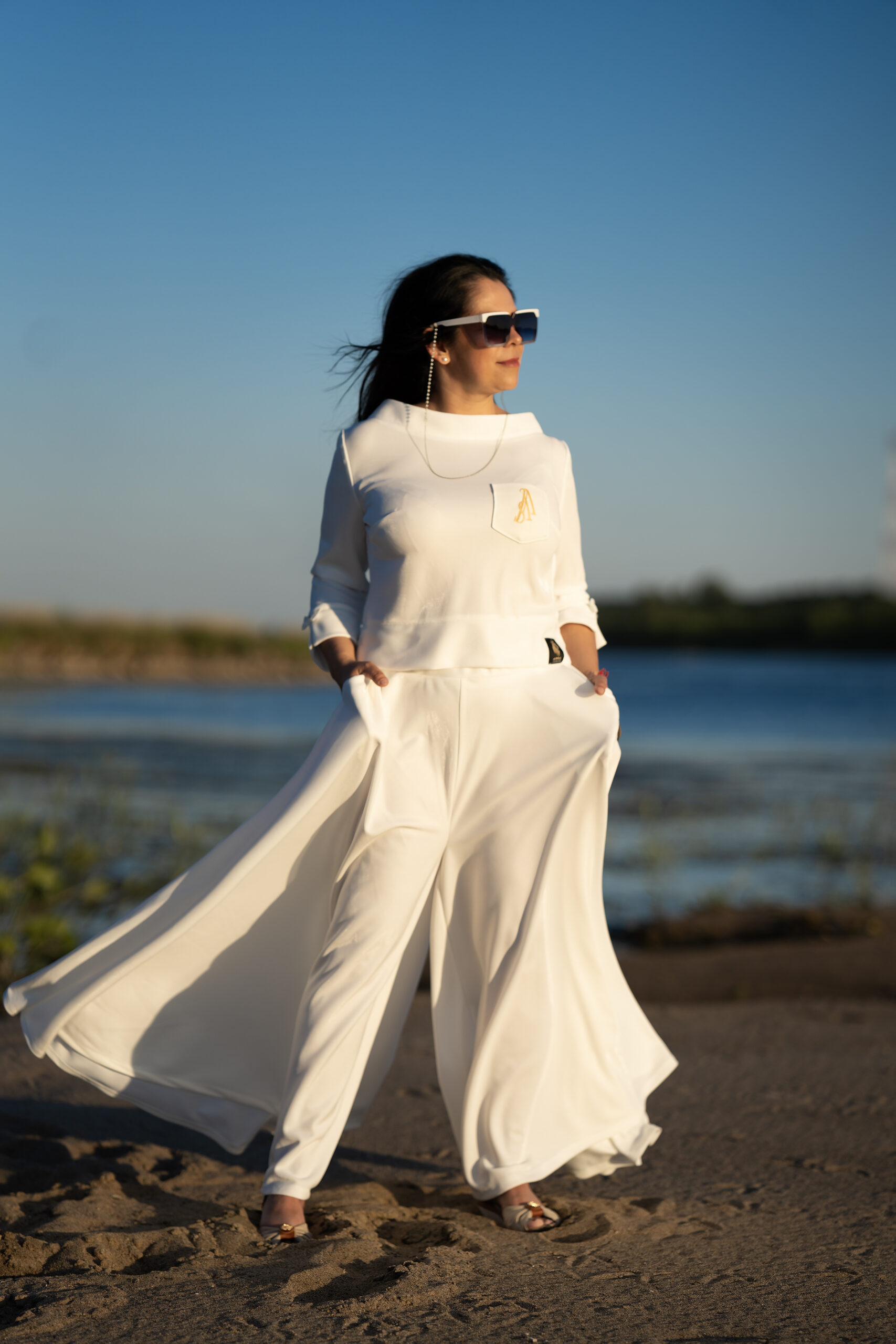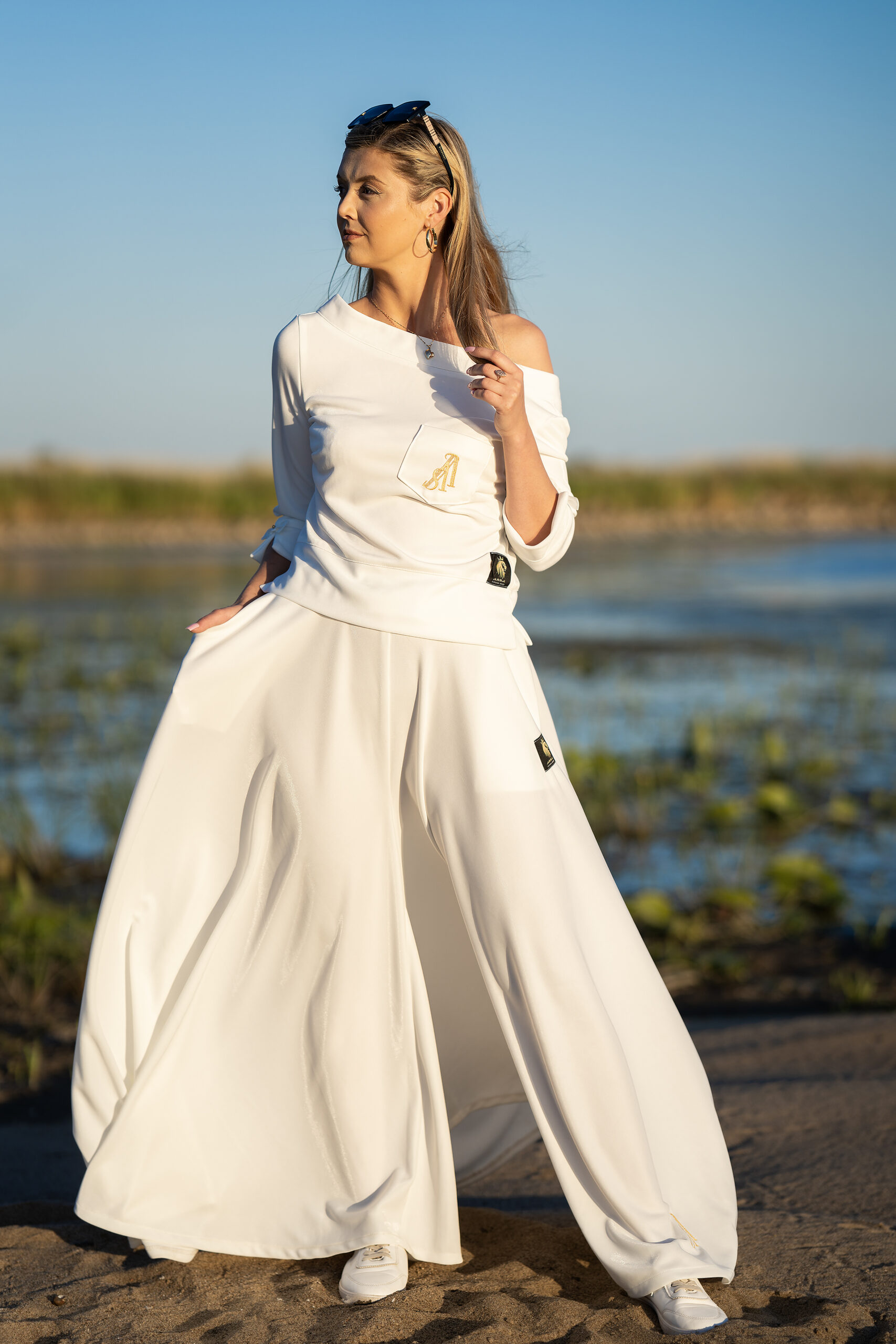 Komplet „Biała Fala – Total White” to subtelna, a jednocześnie silna propozycja stylizacji, w której kobiecość przejawia się w każdym detalu. Idealny na wyjątkowe okazje, wakacyjne plenery, ale i na co dzień – dla tych, które kochają wyrażać siebie lekko i elegancko.